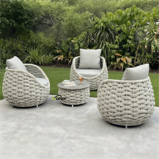 4. Zunanji kavč iz vrvi: ročno pletena vrv je vizualno lahka in zračna, aluminijast okvir pa doda sodoben pridih. Ker združuje udobje in umetnost, je priljubljena izbira za ustvarjanje prefinjenega balkona.