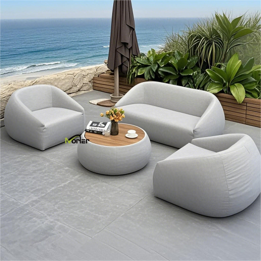 3. Oblazinjena zunanja sedežna garnitura: udobje lene osebe z mehkimi, debelimi blazinami in materiali, ki se hitro sušijo, zaradi česar je udobno ležati ali sedeti.